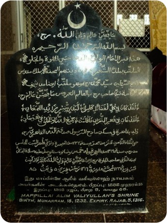 Quthbuz Zaman Allama Ash-Shaikh Imamul Arus Sayyid Muhammad Mappilai Lebbai Alim(R.A.) was brn on Tuesday the 18th Muharram in 1232A.H./1816.AD at Kayalpattinam, a coastal town on the eastern shores of South India.